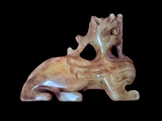 ปี่เซียะ เนื้อหินอ่อน สีเหลืองน้ำตาลทัั้งตัว (เงาสะท้อนแสงจากการถ่ายรูป)