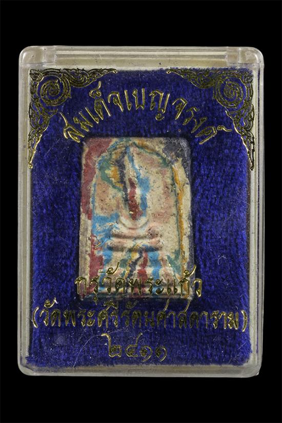 พระสมเด็จเบญจรงค์ 2411 เนื้อสายรุ้งหลังครุฑ (พิมพ์นิยม) กรุวัดพระแก้ว (วัดพระศรีรัตนศาสดาราม) มีผงตะไบเต็มองค์ สวยเดิมนอนกล่องไม่ผ่านใช้ วัดใจขายทุกราคาจบเท่าไหนเอาเท่านั้นครับ