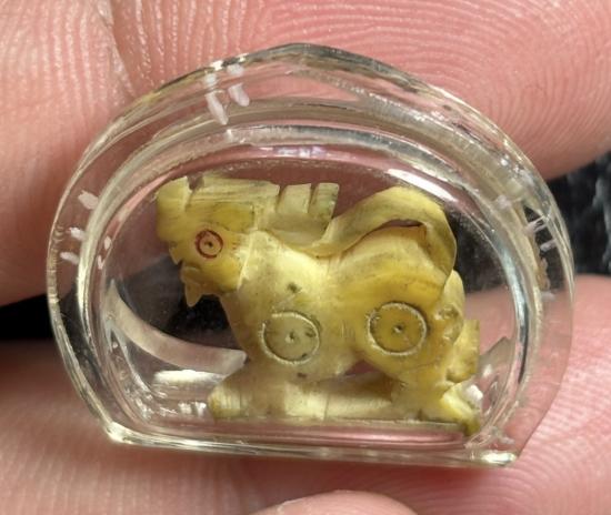 ดูง่ายแกะออกจากเลี่ยม สองขวัญ ขนาดประมาณ 1.5 ซม. น่าจะหลวงพ่อมุ่ยหรือหลวงพ่อหอมครับ ดูง่ายราคาเบาๆเอาไว้ใช้ครับ |