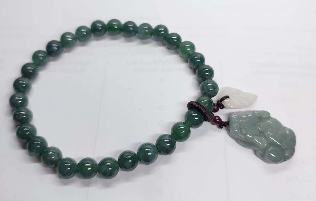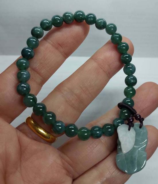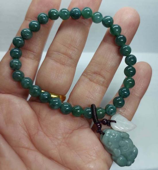 ***วัดใจ***สร้อยข้อมือ หยกพม่า พร้อมจี้ปี่เซี๊ยะ เม็ด 6 มิล สวยๆ
