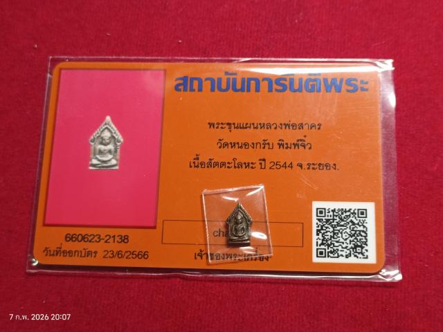 พระขุนแผนหลวงพ่อสาคร วัดหนองกรับ พิมพ์จิ๋ว เนื้อสัตตะโลหะ ปี 2544 จ.ระยอง พร้อมบัตรรับรองพระแท้