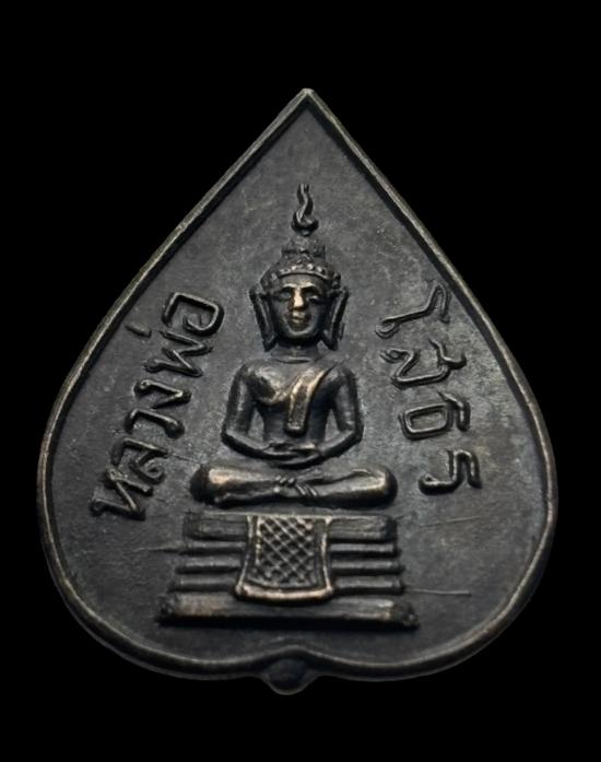 เหรียญใบโพธิ์หลวงพ่อโสธร วัดโสธรฯ เนื้อทองแดงรมดำ ปีพ.ศ. 2514