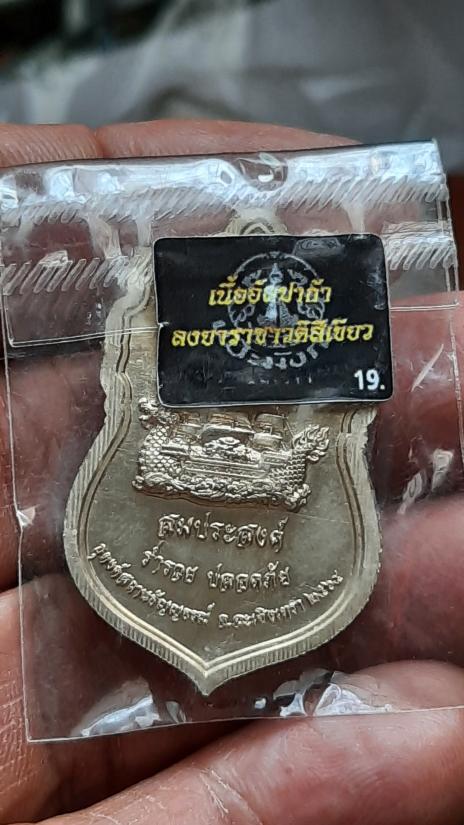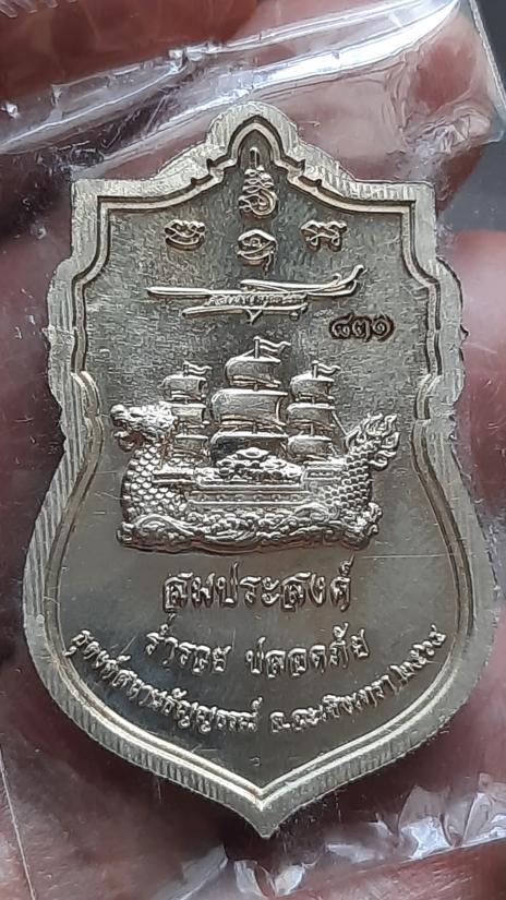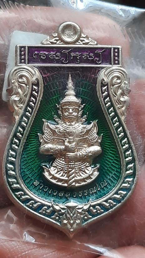 เหรียญท้าวเวสสุวรรณ เสมา1 รุ่นสมประสงค์ รวยสมปรารถนา ฉะเชิงเทรา หมายเลข831 (เนื้ออัลปาก้าลงยาราชาวดีสีเขียว) ไม่แกะซีล