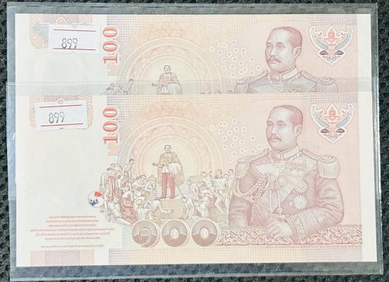 ธนบัตร 100 บาท ร.9 หลังเลิกทาส ทีเดียว 2 ใบ เลขสวยๆ ทั้ง2ใบ ไม่ผ่านการใช้งาน
