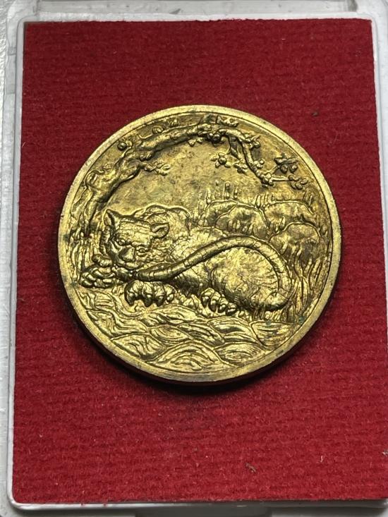 เหรียญพญาเสือเฒ่า เนื้อฝาบาตร พระอาจารย์ประสูติ วัดในเตา แช่น้ำมันเสือ