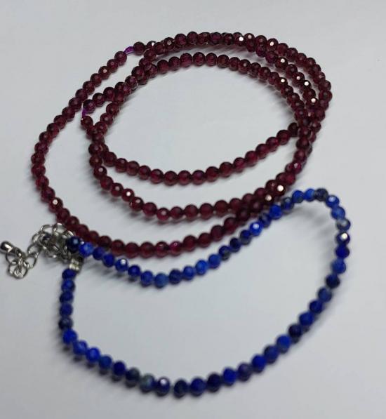 ***วัดใจ***สร้อยโกเมนเจียเหลี่ยม กับ ข้อมือลาพิส ลาซูลี เล่นแสง ขนาดเล็ก 3 mm. ยาว 21 นิ้ว สวยๆ