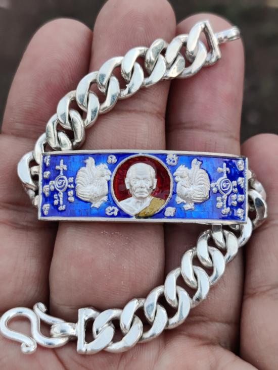 หลวงปู่สรวง วรสุทฺโธ วัดถ้ำพรหมสวัสดิ์ จ.ลพบุรี เลสข้อมือ รุ่นเงินทองล้นเหลือ ปี 2558 เนื้อเงินลงยา (เลข1 ) ขนาด2 บาท ทันหลวงพ่อเสก