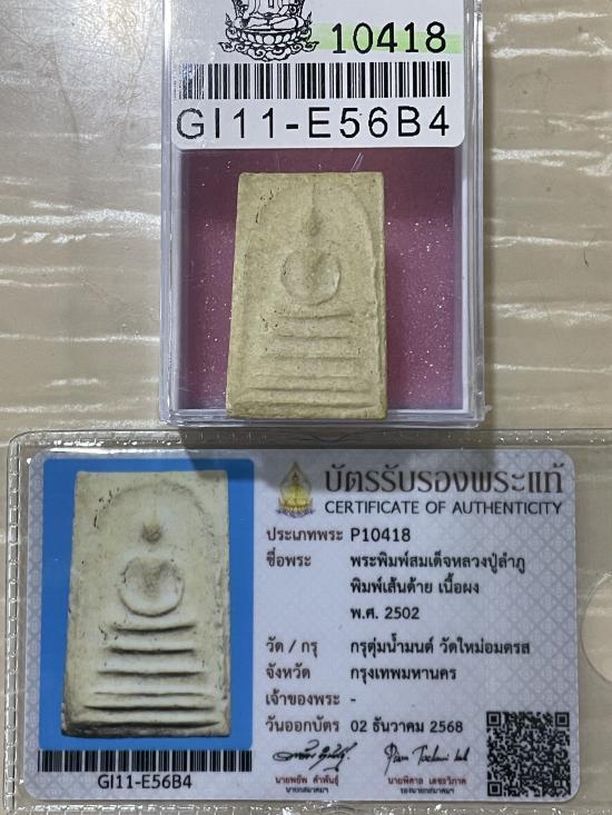 (เคาะแดง3900) +บัตรสมาคม สมเด็จพิมพ์เส้นด้าย หลวงปู่ลำภู ลงกรุตุ่มน้ำมนต์
