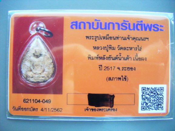 ..พระเครื่องรุ่นนี้ออกที่วัดละหารไร่ ปี2517 โดยมีจำนวนการสร้างน้อยมาก ลป.ทิม ปลุกเสกร่วมกับพระพิมพ์อื่นๆที่ออกในปีนั้น. ยกตัวอย่างเช่น พระปิดตาหลังยันต์ห้าพิมพ์ใหญ่ โดยในครั้งนั้นมีเรื่องกล่าวขานกันเป็นที่ตื่นตาอย่างมากคือ..