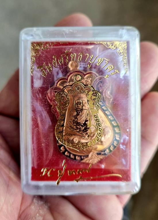 เหรียญเสมาฉลุหลวงปู่หมุน เนื้อทองแดงลงยา2สีรุ่นศิษย์ศรัทธาบูชาครู ออกวัดบ้านจานปี 61 จัดสร้างเพียง 2,000 เหรียญ