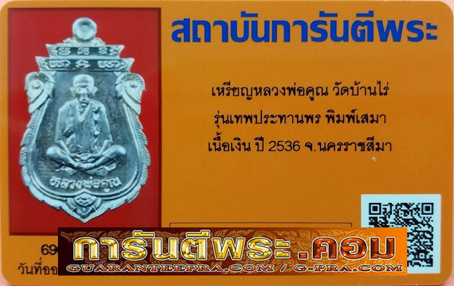 เหรียญหลวงพ่อคูณ วัดบ้านไร่ รุ่นเทพประทานพร พิมพ์เสมา ปี2536 เนื้อเงิน
