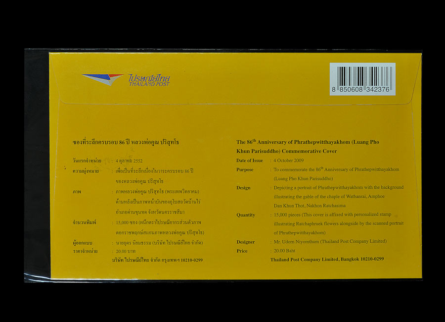 ++จำนวนพิมพ์ : 15500 ซอง , วันแรกจำหน่าย 4 ตุลาคม พ.ศ.2552