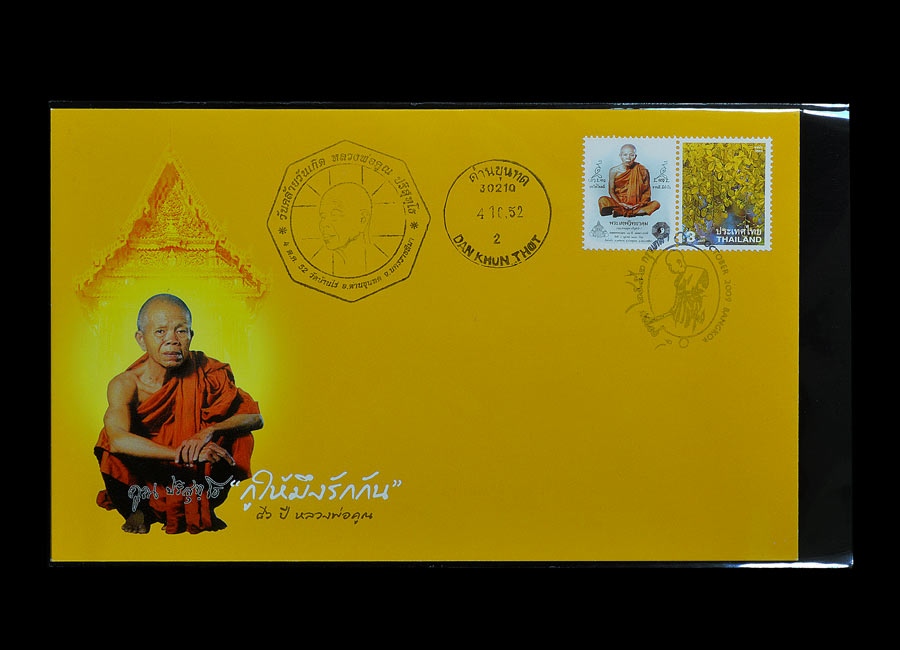 ซองที่ระลึกครบรอบ 86 ปี หลวงพ่อคูณ กูให้มึงรักกัน ( ประทับตรา 3 ตรา พิเศษ ) พ.ศ.2552 ( ติดแสตมป์ 2 ดวง ภาพหลวงพ่อคูณ และ ดอกราชพฤกษ์ )