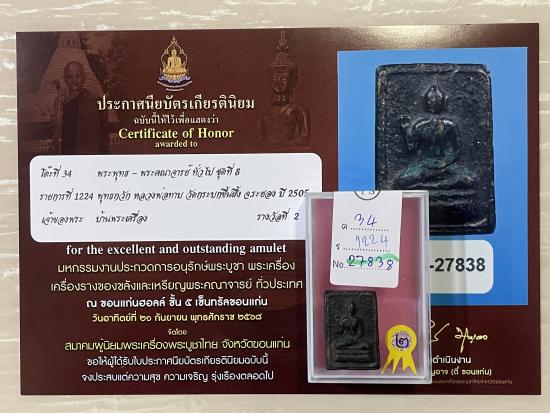 ติดสีผึ้ง หลวงปู่ทิมร่วมปลุกเสก สร้างปี 2505 สวยสมบูรณ์ผิวเดิมๆ ไม่หักไม่ซ่อม รับประกันพระแท้ ดูง่าย พร้อมใบประกาศรางวัลที่2งานสมาคม