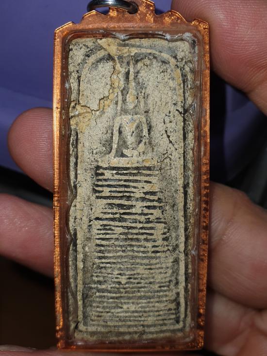 พระสมเด็จเนื้อผงไม่ทราบที่ มีกระเทาะด้านบนขวาตามรูป