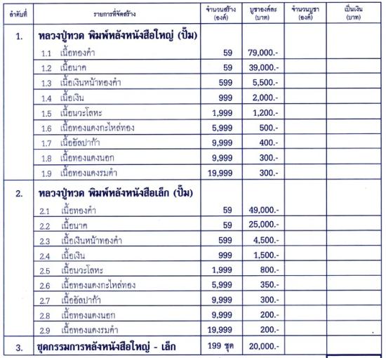 รายการเช่าบูชาจากวัด