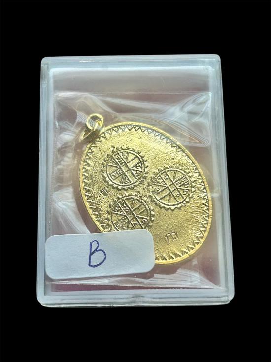 เหรียญยันต์สามดวงพุทธาลัย วัดถ้ำขุนแผน "เนื้อชนวนกะไหล่ทอง" (กรรมการ) 2 โค้ด สร้างน้อย (B)