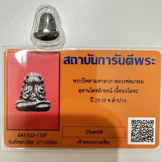 พระปิดตามหาลาภ หลวงพ่อเกษม สุสานไตรลักษณ์ เนื้อนวโลหะ ปี 2518 จ.ลำปางมาพร้อมบัตรGครับ