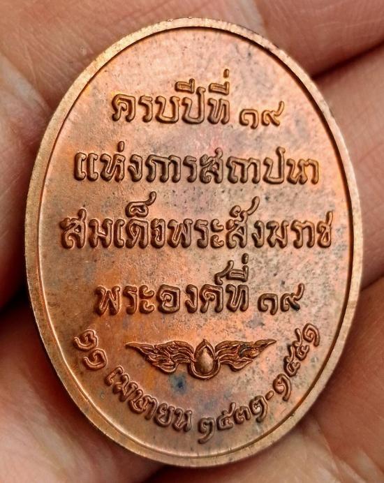 เหรียญสถาปนา สมเด็จพระสังฆราช องค์ที่๑๙ ครบปีที่ 19 ปลุกเสก วัดบวรนิเวศวิหาร เนื้อทองแดง ปี 51 ตลับเดิม