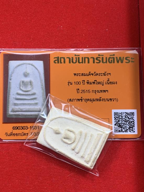 พระสมเด็จวัดระฆัง รุ่น 100 ปี พิมพ์ใหญ่ไข่ปลาเลือน ปี 15 พระเดิมครับ มีมุมนิดเดียว ตามบัตรระบุ มาพร้อมบัตรรับรองครับ