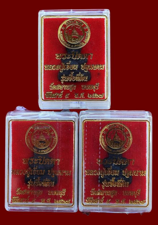 ชุด 3 องค์...พระปิดตา เนื้อผง ฝังตะกรุด รุ่นซื้อที่ดิน พิธีเสาร์ห้า ปี 2567 หลวงปู่เอี่ยม วัดสะพานสูง จ.นนทบุรี พร้อมกล่องเดิมจากวัด (แกะซีนถ่ายรูป 1 องค์ อีก 2 องค์ไม่ได้แกะซีน) สภาพพระตามรูปที่ลงทุกประการ (ขนาดประมาณ 2.5 x 1.8 ซม.)