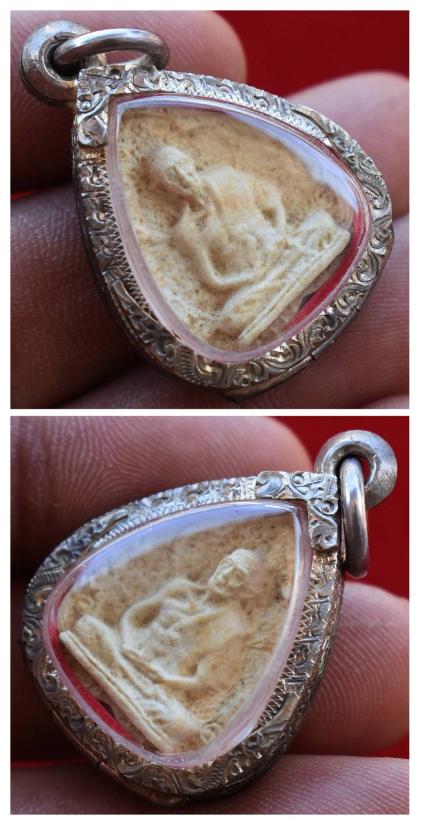 พระผงรูปเหมือนใบโพธิ์ ปี 2519 หลวงปู่สี วัดเขาถ้ำบุญนาค จ.นครสวรรค์ ใส่ตลับเงินพร้อมห้อยบูชา