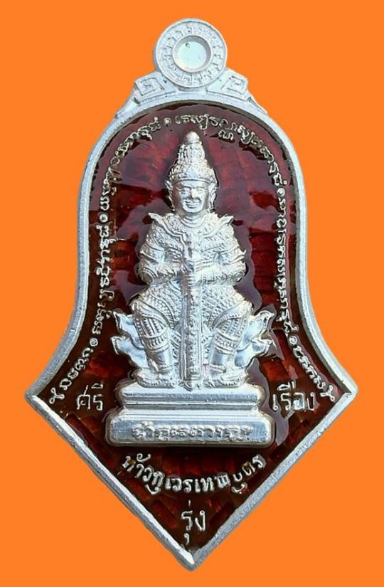 เหรียญจำปีเล็กหน้าเทพ รุ่น ศรีรุ่งเรือง เนื้อเงินลงยา เลข 517 ปี 2562 พระอาจารย์อิฐ วัดจุฬามณี