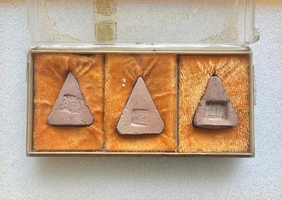ชุดพระเนื้อดินหลวงพ่อโบสถ์น้อย วัดอมรินทราราม กรุงเทพ ปี 2523 จำนวน 3 องค์ พร้อมกล่องเดิมครับ แต่ขาพับกล่องชำรุดเจ้าของเดิมแป๊ะสก็อตเทปไว้นานแล้ว