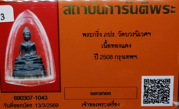 พระกริ่งภปร. วัดบวรนิเวศฯ เนื้อทองแดงรมดำ กริ่งดัง ตะไบหยาบ ปี2508 จ.กรงเทพฯ + บัตรG-pra สภาพเดิมค่ะ พระสภาพตามรูปทุกประการค่ะ