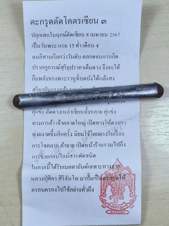 ตะกรุดตัดโคตรเซียน 3 หลวงปู่ศิลา สิริจันโท เนื้อตะกั่วขอมพันปี มาพร้อมปลอกใช้บูชาได้เลย
