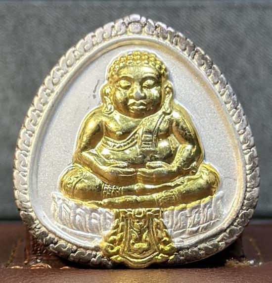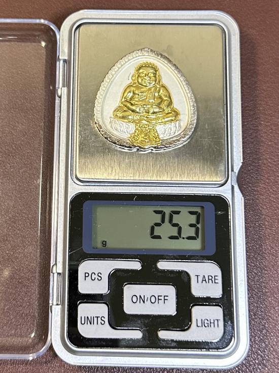 พระปิดตาเงินล้นเงินเหลือ เนื้อเงิน องค์กะหลั่ยทอง หนักประมาณ 25.3 กรัม พร้อมกล่องเดิม