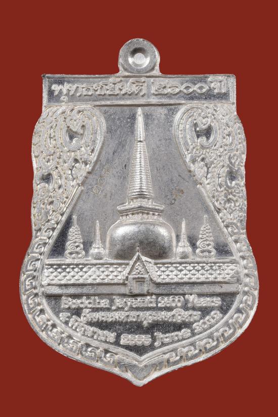 เหรียญเนื้อเงิน พุทธชยันตี 2600 ปี การตรัสรู้ขององค์สัมมาสัมพุทธเจ้า พระพุทธสิหิงค์ หลังพระบรมธาตุเจดีย์ นครศรีธรรมราช