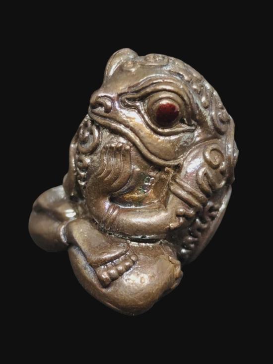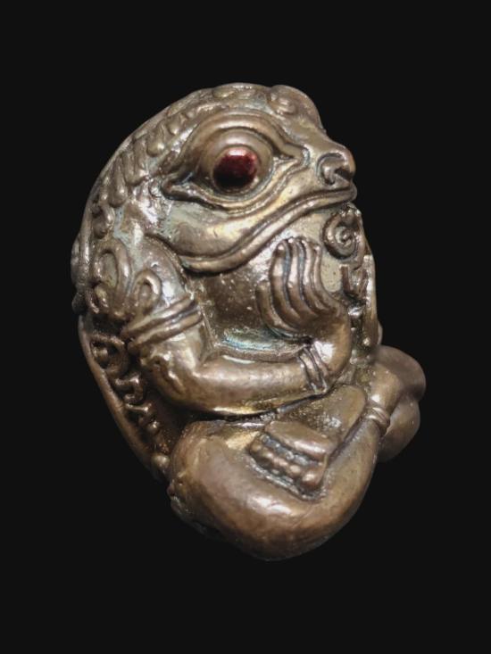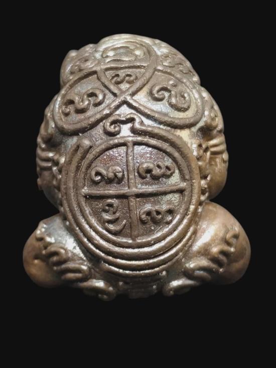 กบกินตะวัน ราชาทรัพย์ พญากบรุ่น 3 เนื้อสัตตะโลหะ หมายเลข 338 หลวงปู่ครูบาออ สำนักสงฆ์ดอยจอมแวะ จ.เชียงใหม่ พ.ศ. 2558 คาถา อุอิอัง อุอังอะอิ มิอะมิ เปิดบูชารับทรัพย์ รับโชค เรียกเงิน เรียกทอง