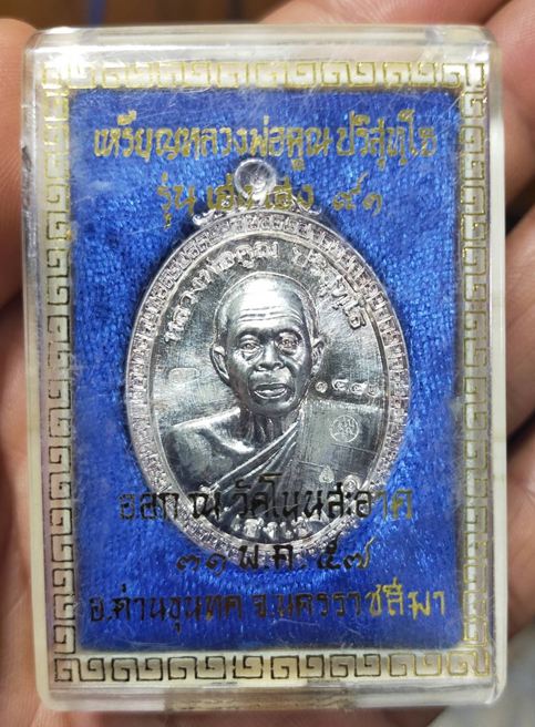 เหรียญหลวงพ่อคูณ เนื้อเงิน รุ่น เฮง เฮง 91 หมายเลข 1442 สร้าง 1500 เหรียญ สภาพสวย พร้อมกล่องเดิม
