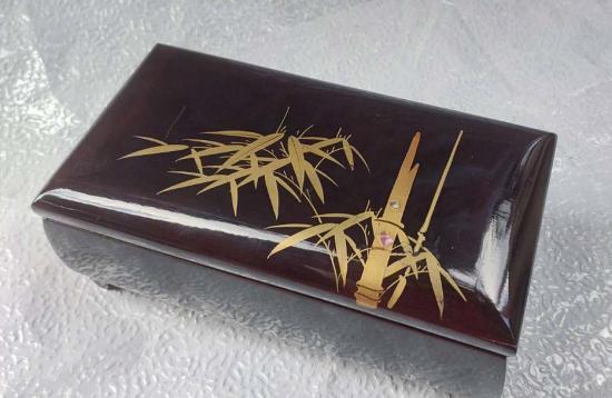 ***วัดใจ***กล่องเครื่องประดับมีดนตรี MADE IN JAPAN กล่องเครื่องประดับเคลือบเงาสีดำสไตล์ญี่ปุ่นวินเทจ ประดับลายไผ่สีทอง ใช้งานได้