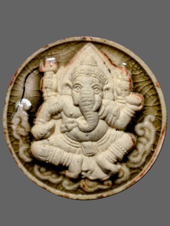 พระพิฆเนศวร์ รุ่นบังเกิดทรัพย์ เนื้อสังคโลก กล่องเดิม /พิธีมงคลเทวาภิเษก ณ ปราสาทพนมรุ้ง ปี 2549