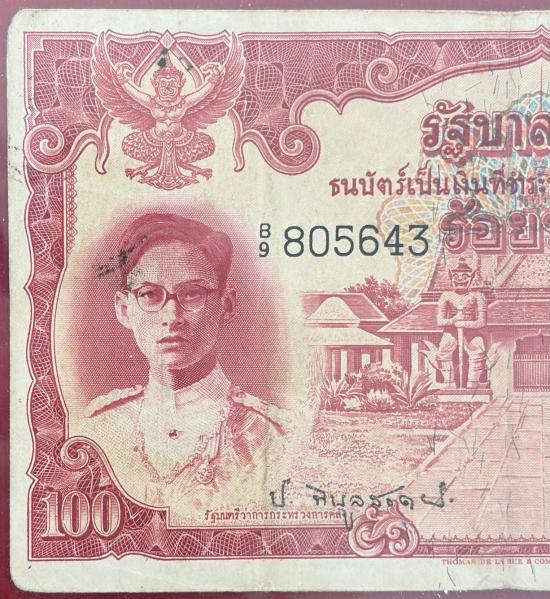 ธนบัตร 100 บาท แบบ 9 หน้าหนุ่ม ลายน้ำพาน รัฐธรรมนูญ...ลายเซ็น จอมพล ป พิบูลสงคราม- เดช. สนิทวงศ์ หายาก สภาพสวยตามรูป |