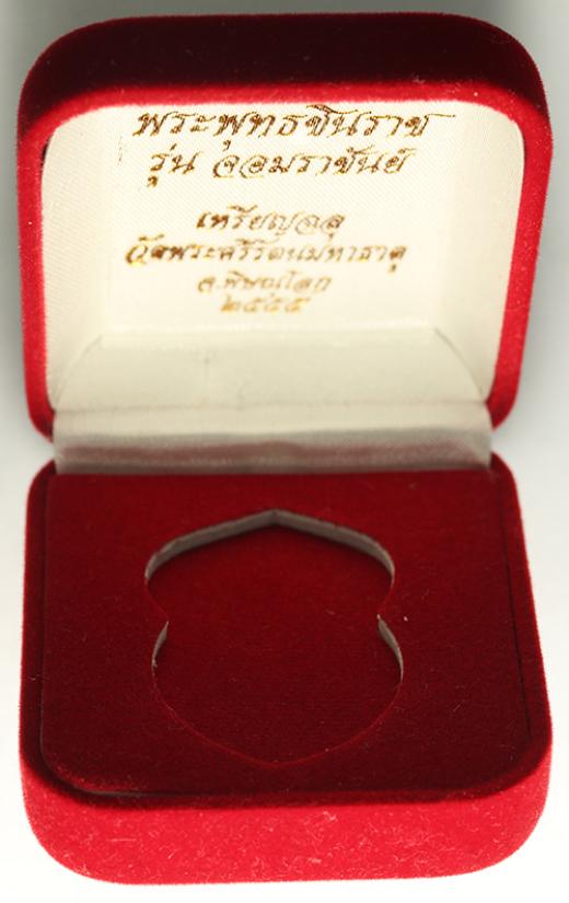 เหรียญหล่อฉลุพระพุทธชินราช รุ่น จอมราชันย์ วัดพระศรีรัตนมหาธาตุฯ จ.พิษณุโลก ปี 2555 เนื้อเงินลงยาราชาวดี ขอบสีเขียว หมายเลข 475 โค๊ด พุทธชยันตรี จาก ชุด พุทธชยันตรี สร้าง 99 องค์ พร้อมกล่องเดิม ครั