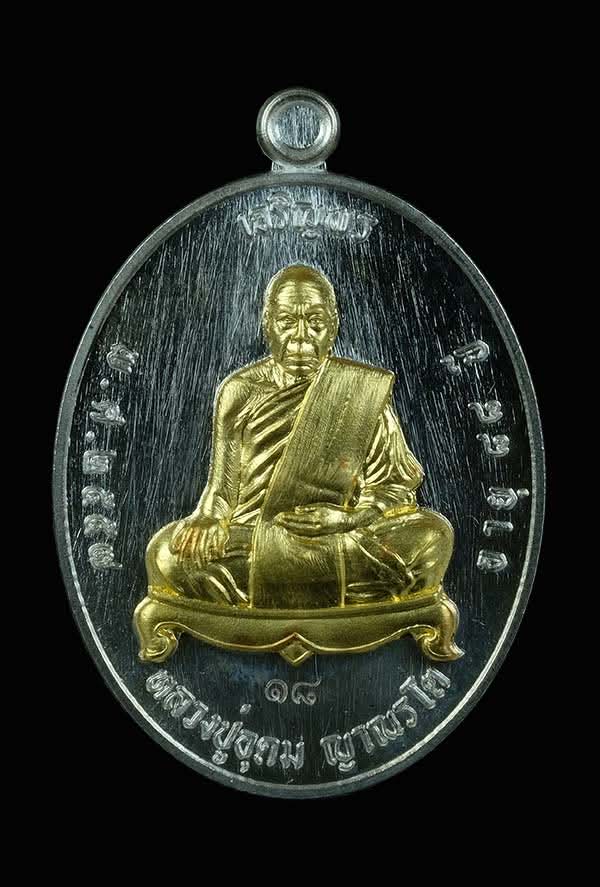 @@@ เหรียญหลวงปู่อุดม ญาณรโต รุ่นเจริญพรบนเต็มองค์ ปี2553 ครบรอบอายุ 88ปี วัดป่าสถิตย์ธรรมานาราม อ.พรเจริญ จ.บึงกาฬ เนื้อเงินหน้ากากทแงคำหลังเรียบ พร้อมรอยจารด้านกลัง สวย คลาสิคมากๆครับ @@@