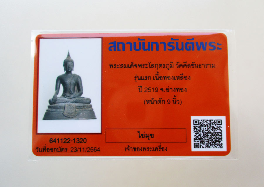 สมเด็จพระโลกุตรภูมิ วัดศีลขันธาราม จ.อ่างทอง รุ่น 1 พ.ศ.2519 หน้าตัก 9 นิ้ว เนื้อโลหะผิวหิ้งหล่อดินไทย พุทธศิลป์สวยสมบูรณ์ สภาพสวยสมบูรณ์....พร้อมบัตรรับรองพระแท้จากสถาบันการันตีพระ !!