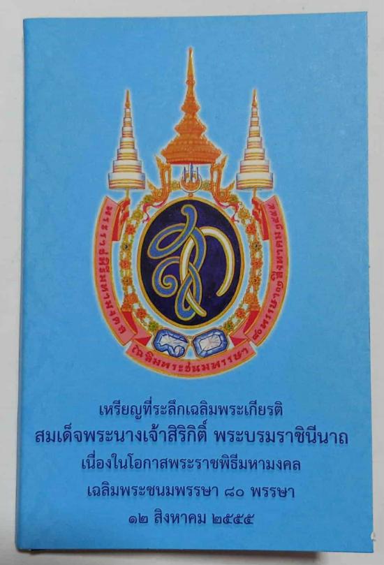 เหรียญที่ระลึกเฉลิมพระเกียรติ สมเด็จพระนางเจ้าสิริกิติ์ พระบรมราชินีนารถ เนื่องในโอกาสพระราชพิธีมหามงคล เฉลิมพระชนมพรรษา 80 พรรษา 12 สิงหาคม 2555 เนื้อทองแดง 3 ซ.ม. จำนวน 1 เหรียญ ครับ