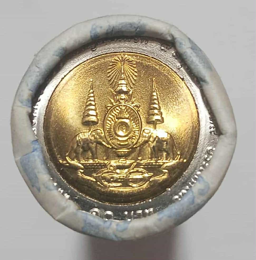 เหรียญ 10 บาท สองสี ฉลองสิริราชสมบัติครบ 50 ปี กาญจนาภิเษก ในสมัยรัชกาลที่ 9 ((9 มิถุนายน พ.ศ.2539)) บล็อคอิตาลี ไม่ผ่านการใช้งาน UNC บรรจุแบบหลอด 1 หลอด มี จำนวน 50 เหรียญ หลอดสวยกริป หลอดไม่แตกไม่ห