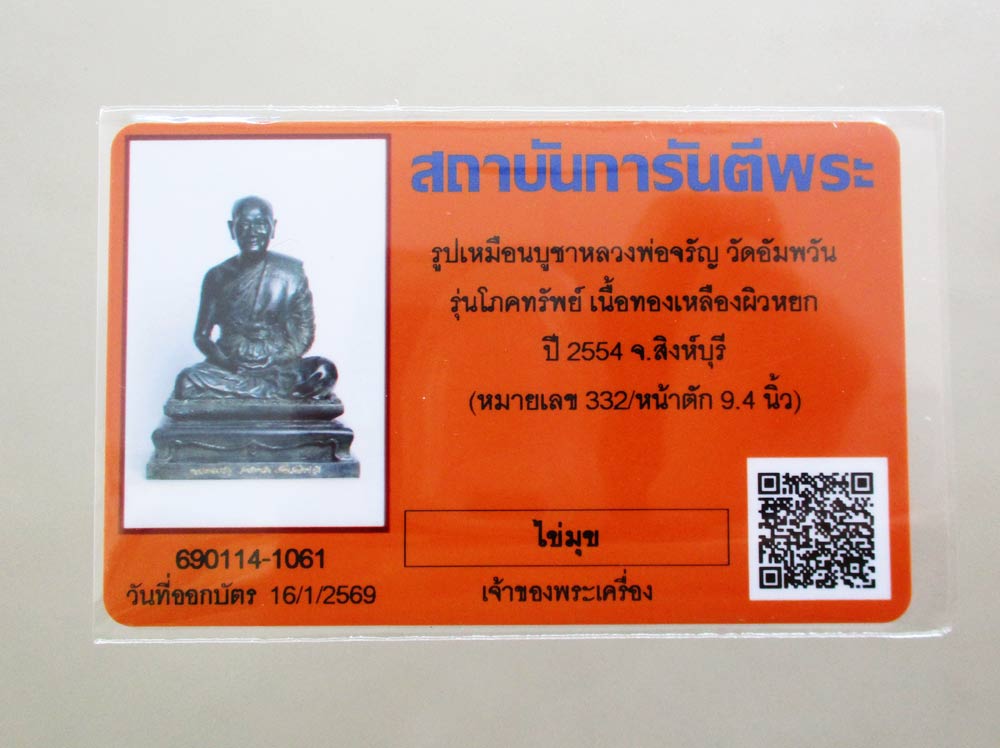 พระบูชา หลวงพ่อจรัญ วัดอัมพวัน จ.สิงห์บุรี รุ่น โภคทรัพย์ พ.ศ.2554 หน้าตัก 9.5 นิ้ว สภาพศิลป์สวยสมบูรณ์ พร้อมบัตรพระแท้การันตีพระ !!
