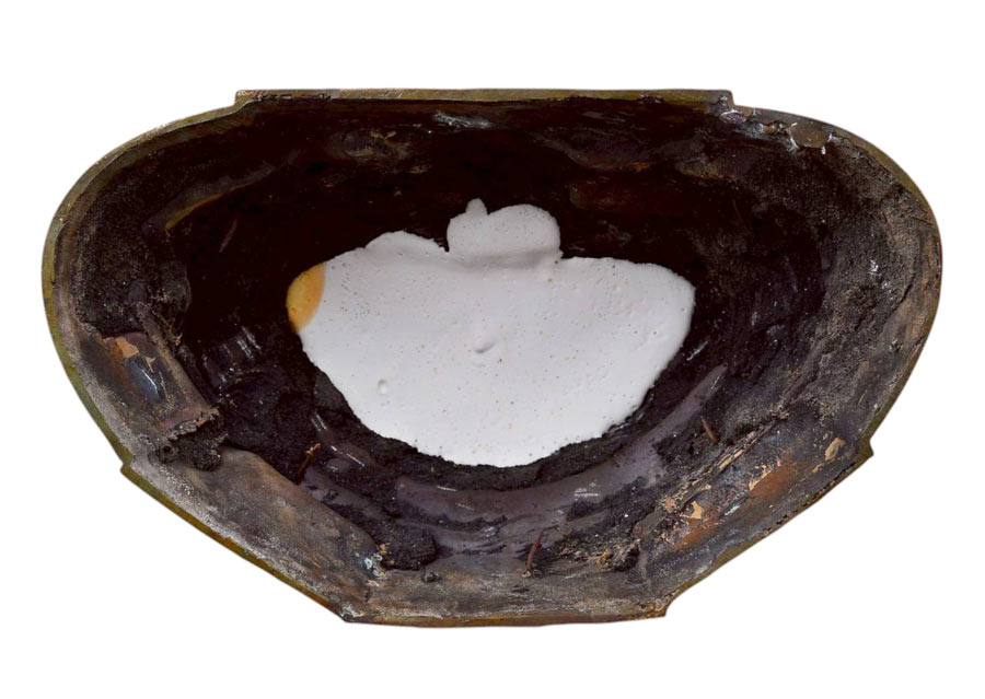 ใต้ฐานหล่อดินไทยดำสีดำ มีตะปูยึดขึ้นหุ่นเทียนองค์พระ 5 ตัว !!