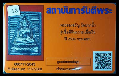 พระของขวัญ เนื้อเงิน รุ่นซื้อที่ดิน ปี2534 วัดปากน้ำ กรุงเทพ
