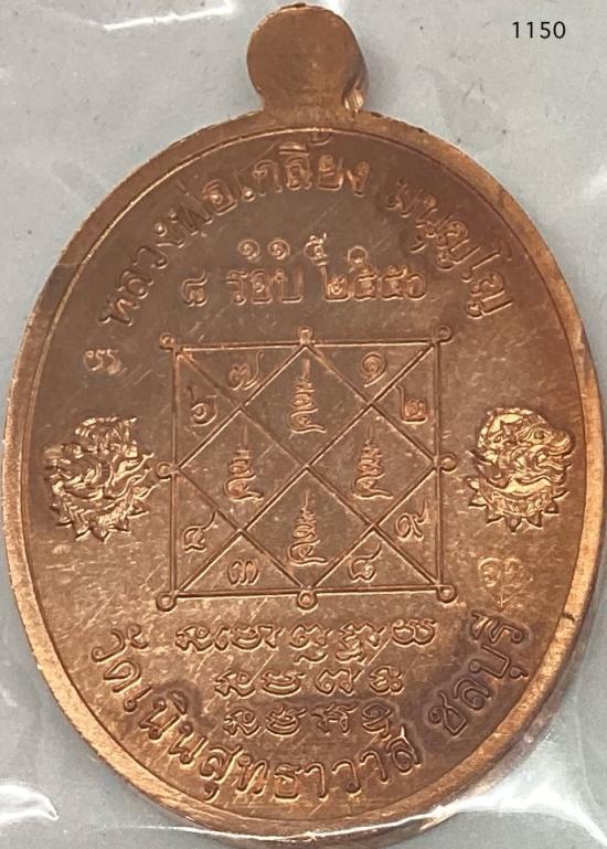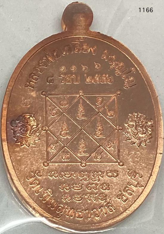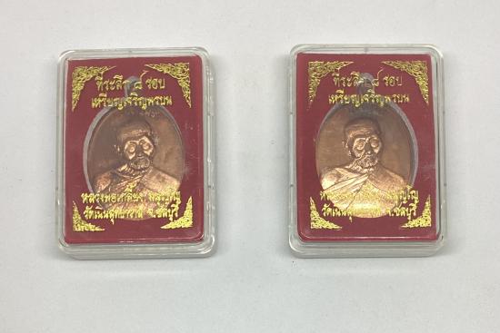 เหรียญที่ระลึก 8 รอบ รุ่นเจริญพร หลวงพ่อเกลี้ยง มนุญโญ วัดเนินสุทธาวาส จ. ชลบุรี ปี 2556 เนื้อทองแดง หมายเลข 1150 + หมายเลข 1166 พร้อมกล่อง ทีเดียว 2 เหรียญครับ