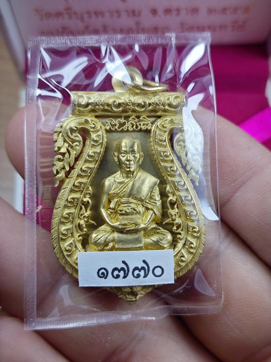เหรียญเสมาฉลุ รุ่น บงกชบูรพา หลวงปู่บัว วัดศรีบุราพาราม จ.ตราด เนื้อทองระฆัง หลังฝังตะกรุด หมายเลข 1770 สภาพสวยดั่งทองคำพร้อมกล่องเดิมๆ