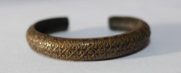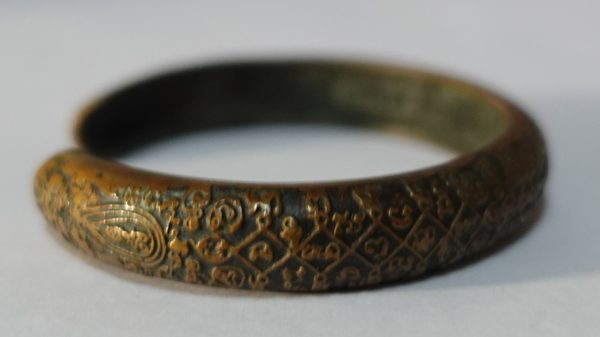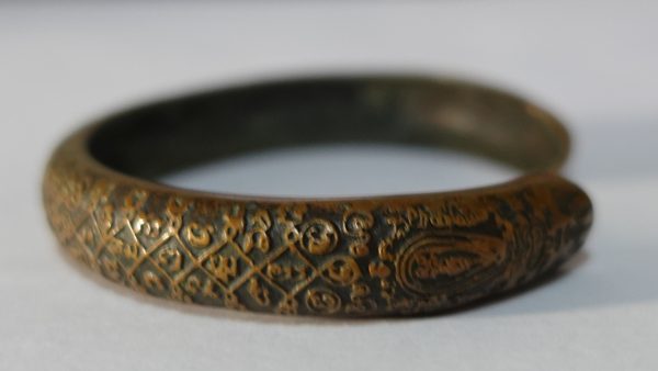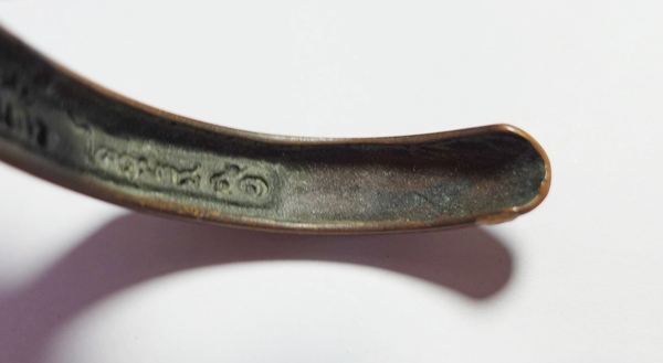 กำไลเขี้ยวแก้วประกาศิตมหาเศรษฐี หลวงปู่กาหลง ปี 2551 เนื้อนวโลหะ สภาพใช้