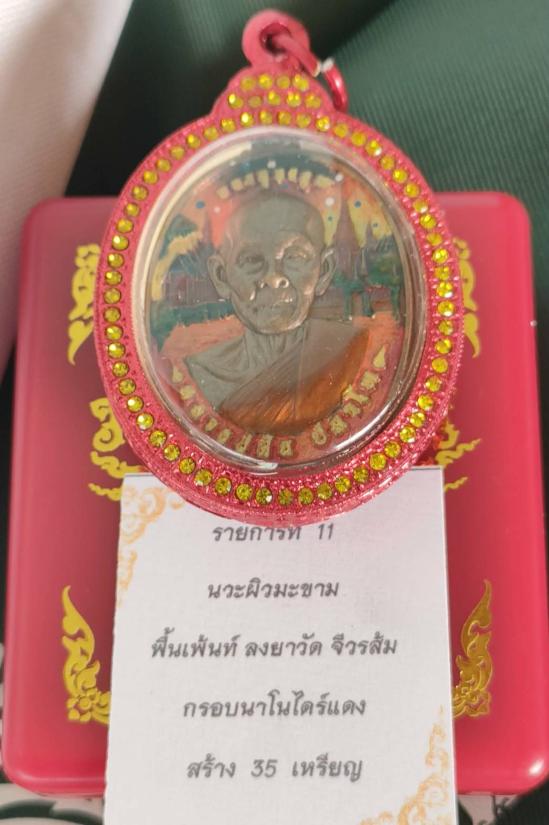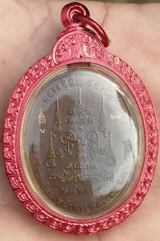 เหรียญรุ่น"มหาพุทธคุณ" หลวงปู่ฝั้น ปสาโท วัดศรีถมอรัตน์(หน้าผา)จ.เพชรบูรณ์ เนื้อนวะโลหะ พื้นเพ้นท์ ลงยาวัด เลี่ยมตลับชุบนาโนไดร์แดงฝังพลอยเหลืองรอบ หมายเลข ๒๑ พร้อมกล่อง เหรียญสวยๆน่าสะสมมากคับ