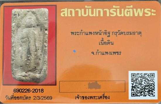 พระกำแพงหน้าอิฐ เนื้อดิน จ.กำแพงเพชร พร้อมบัตรรับรอง